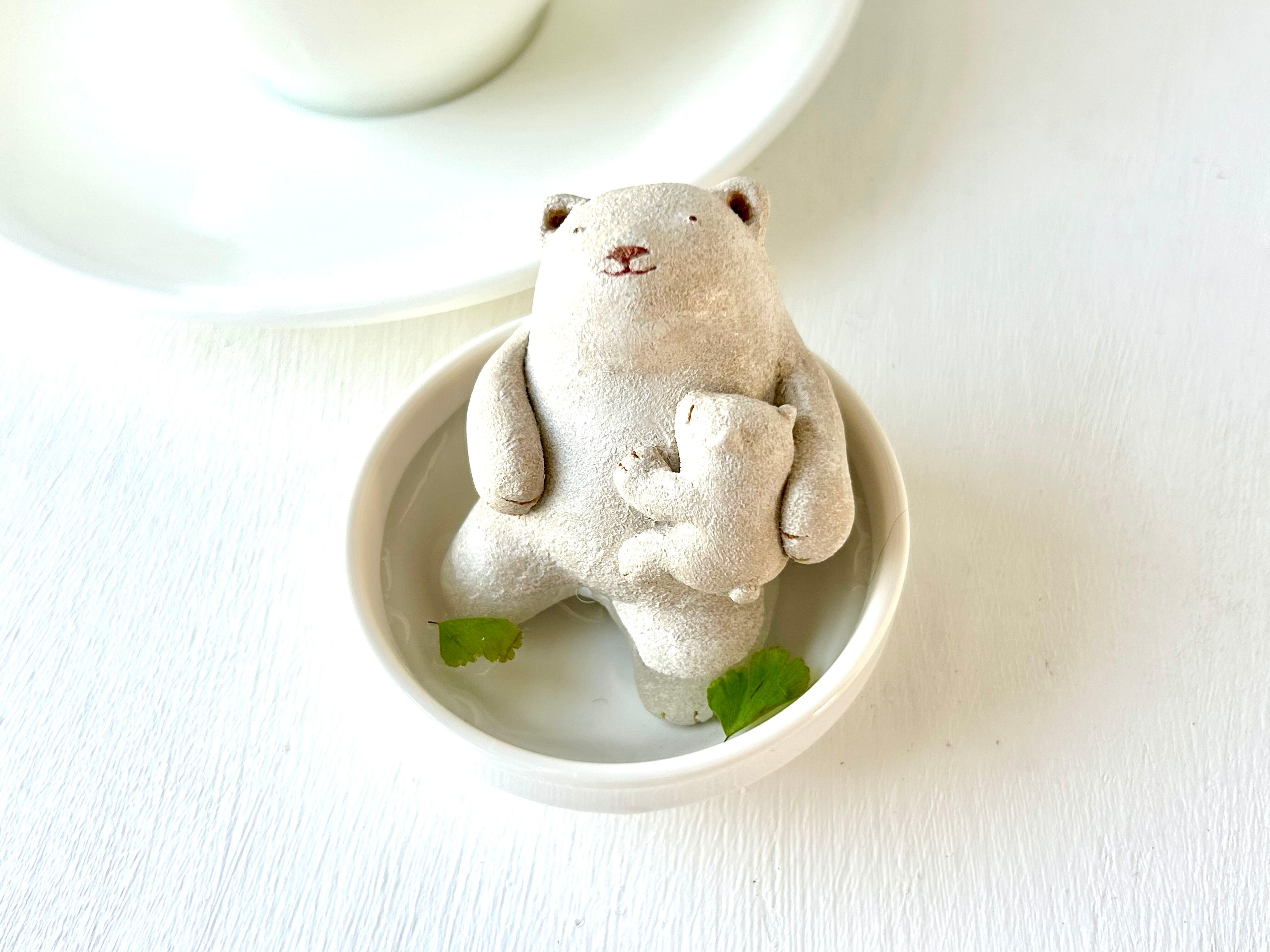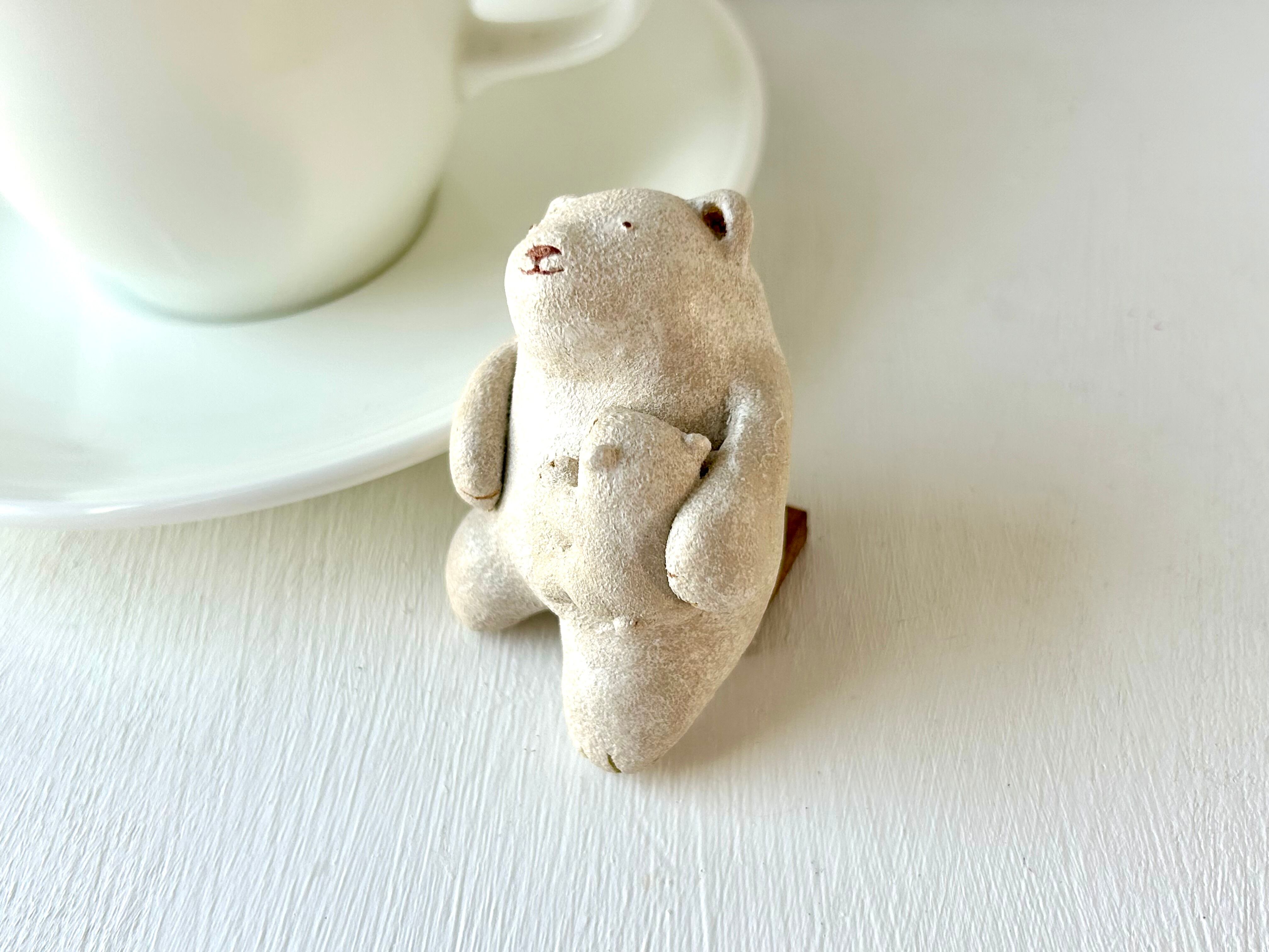 子グマさんは、クマさんにしっかり抱きついています。元気にスクスク育っています。でもやっぱりまだまだ甘えたいのです。そんな子グマさんが可愛いくて仕方がないクマさんです。