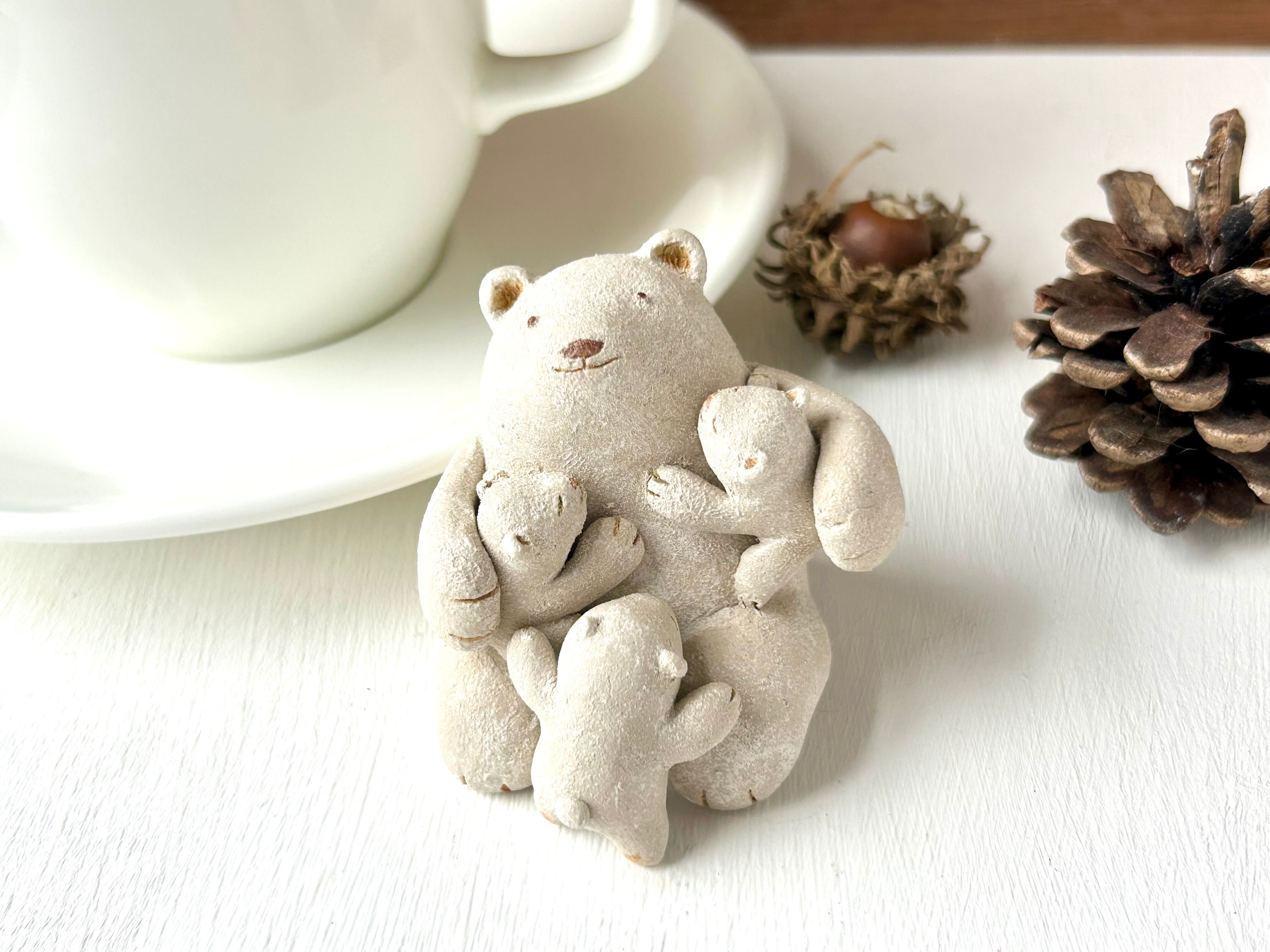 このクマさんたちは防水加工が施されているため、水に浸けてディスプレイすることも可能です。親子での楽しいお風呂風景を演出して、お部屋のインテリアとしてお楽しみいただけます! 陶土粘土製 親クマさん身長約4センチ