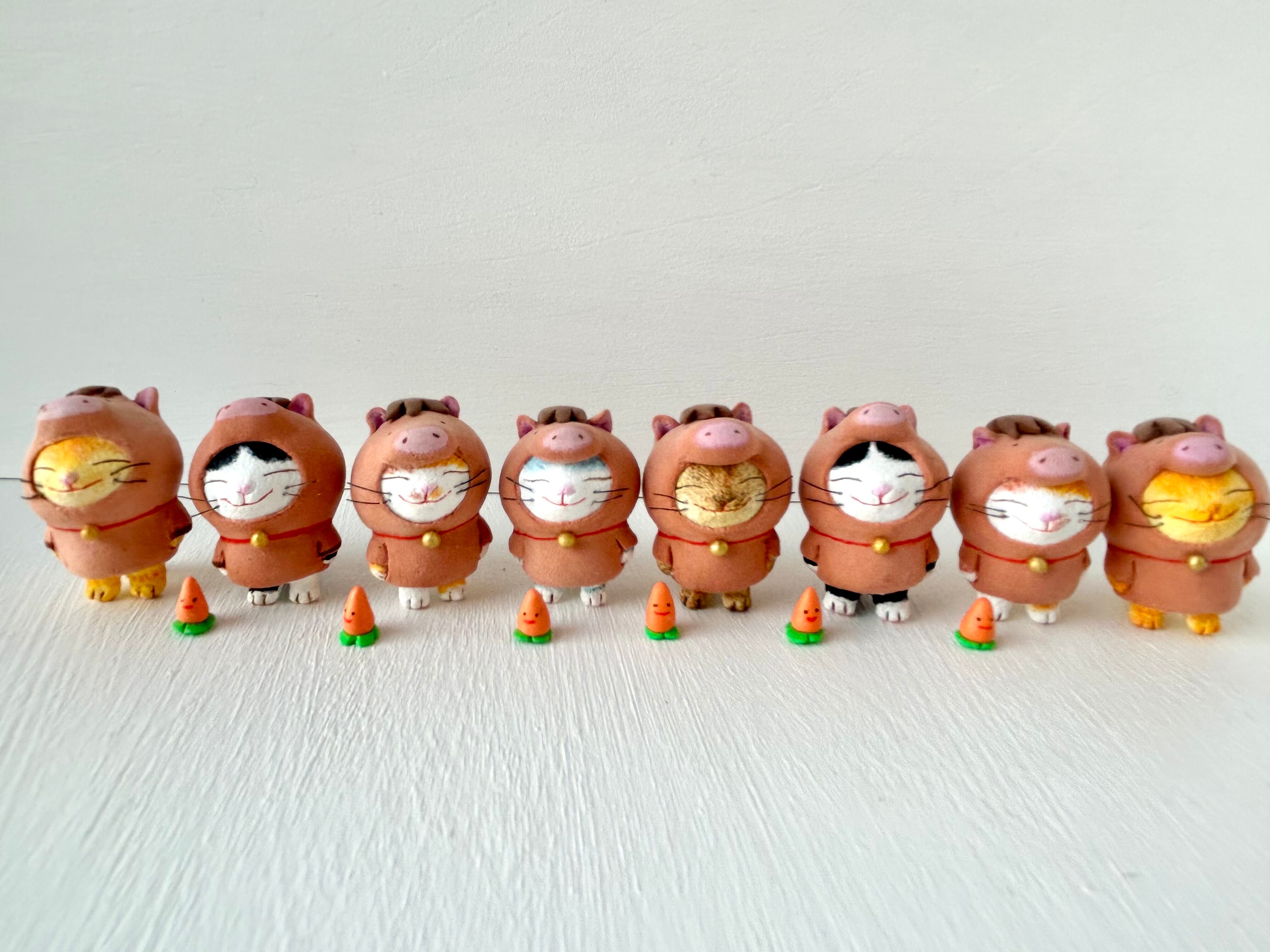 猫さん身長約3センチ。ニンジンさん身長約0.8センチ。