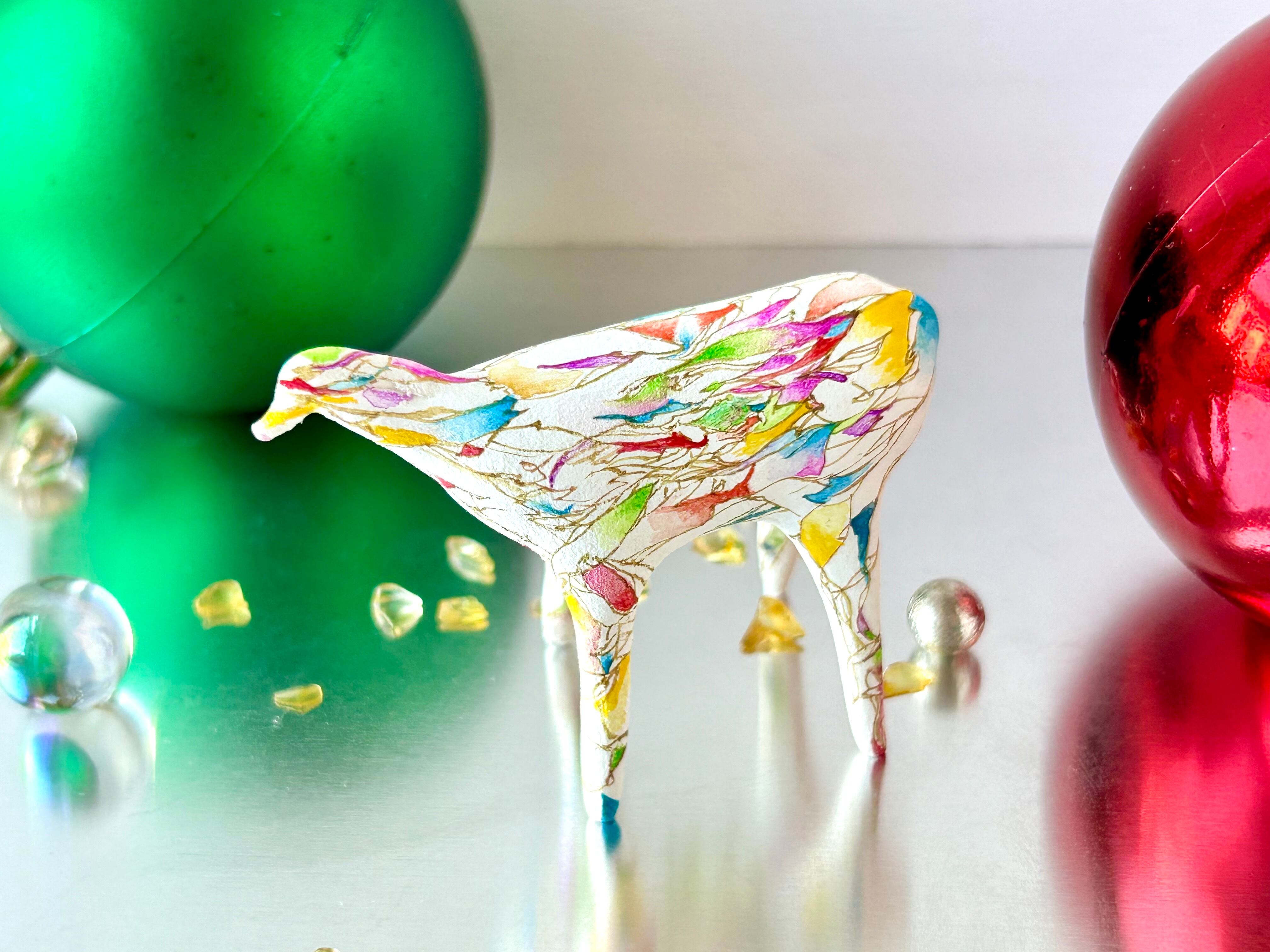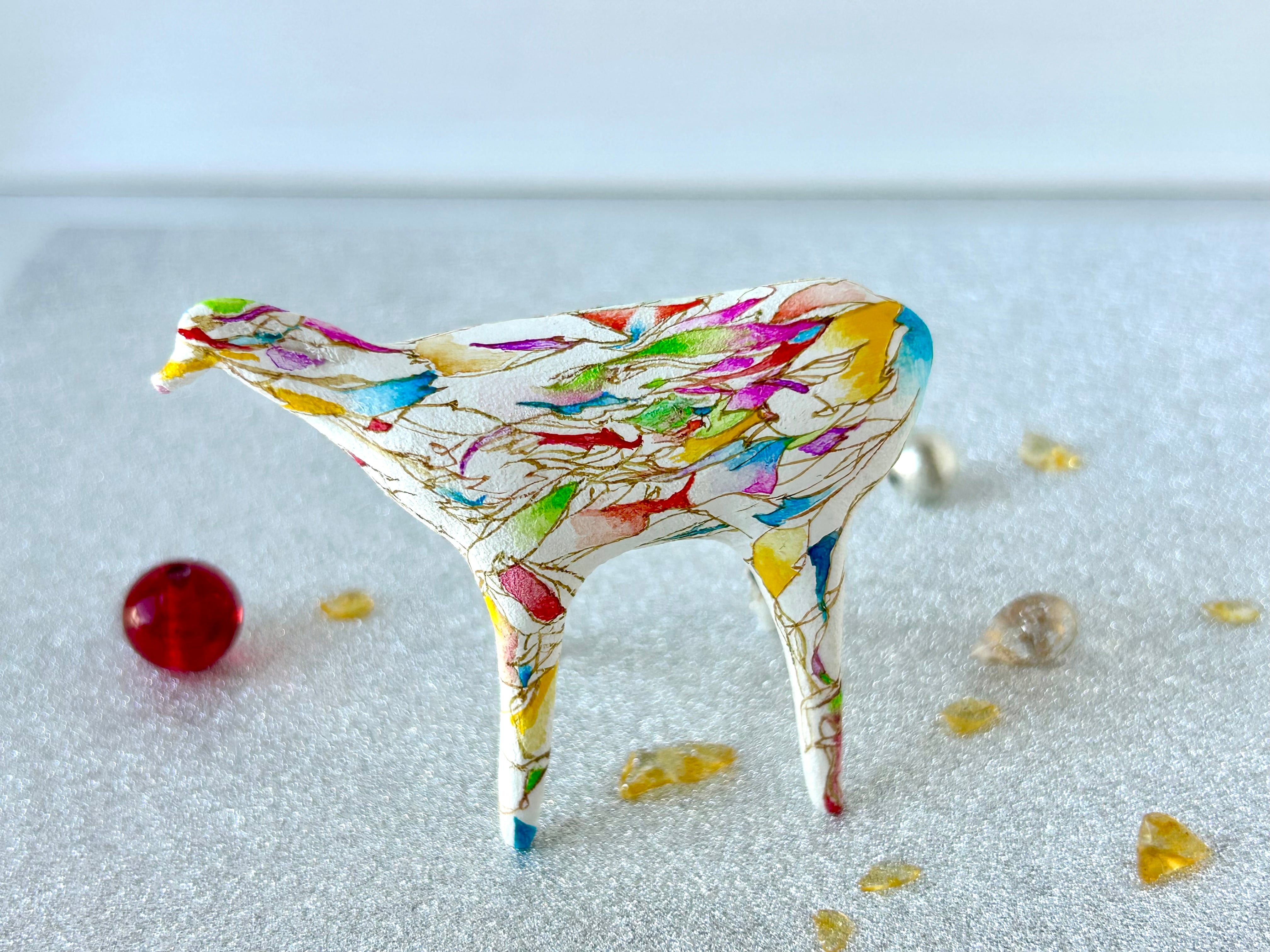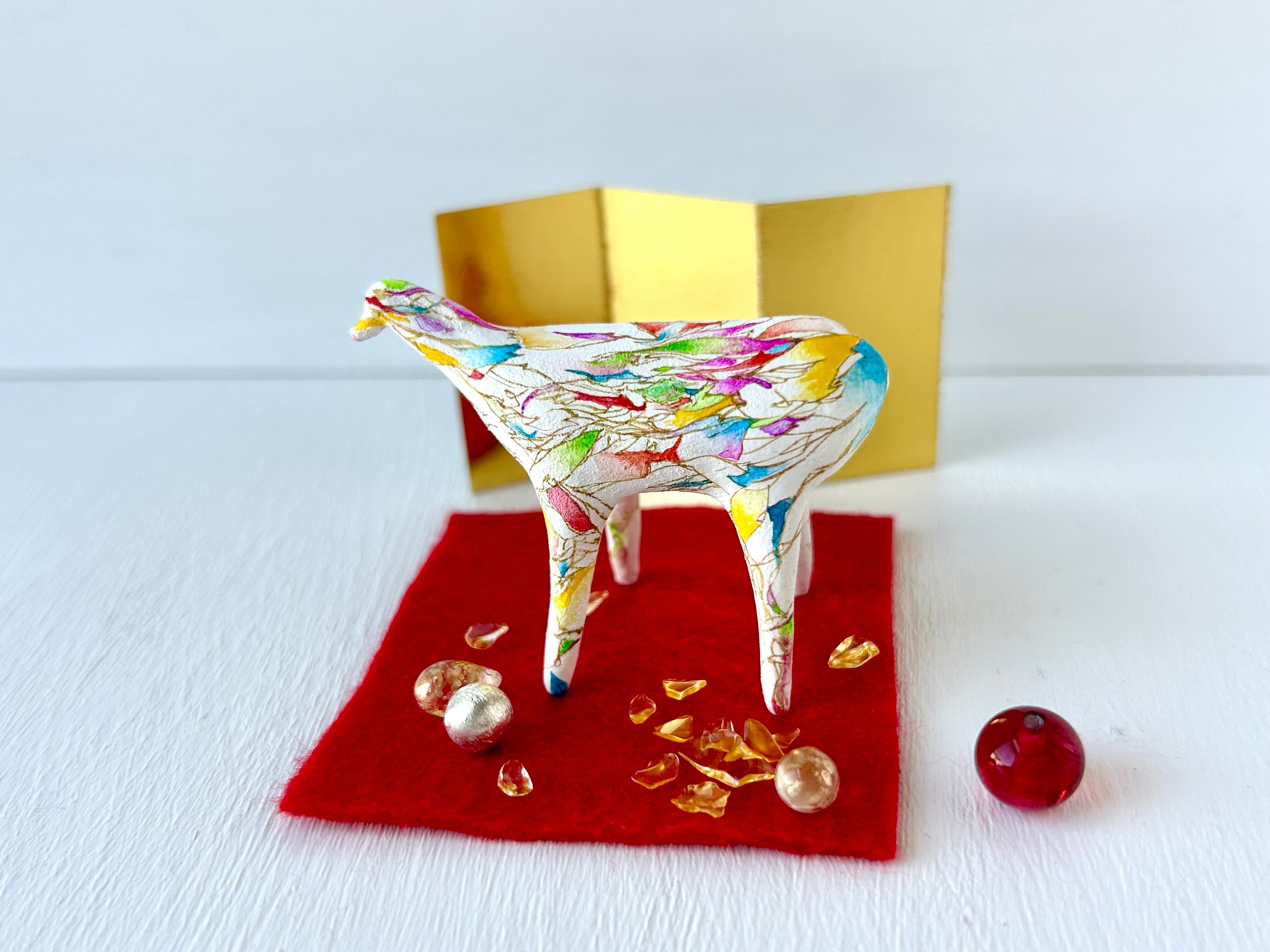 色鮮やかなデザインが特徴的で、お正月やクリスマスだけでなく、一年中お楽しみいただける作品です。 ちょっとしたスペースに、お手持ちの小物と組み合わせて飾っていただくことで、華やかで温かみのある雰囲気を一年中お楽しみいただけます。