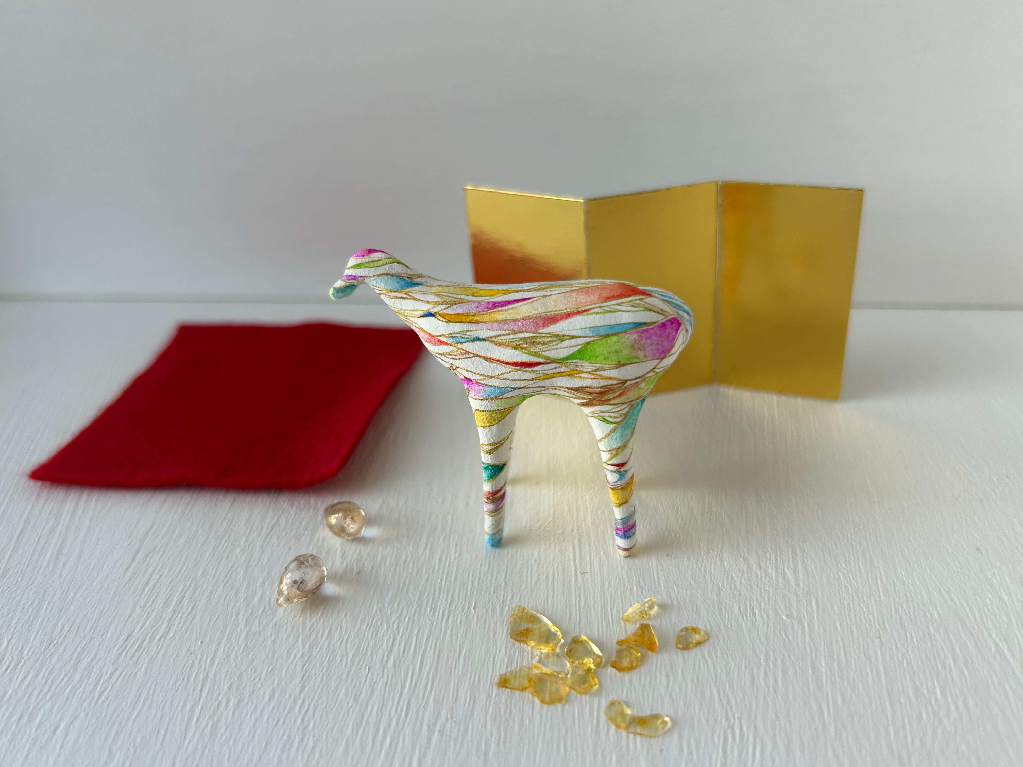 色鮮やかなデザインが特徴的で、お正月やクリスマスだけでなく、一年中お楽しみいただける作品です。 ちょっとしたスペースに、お手持ちの小物と組み合わせて飾っていただくことで、華やかで温かみのある雰囲気を一年中お楽しみいただけます。