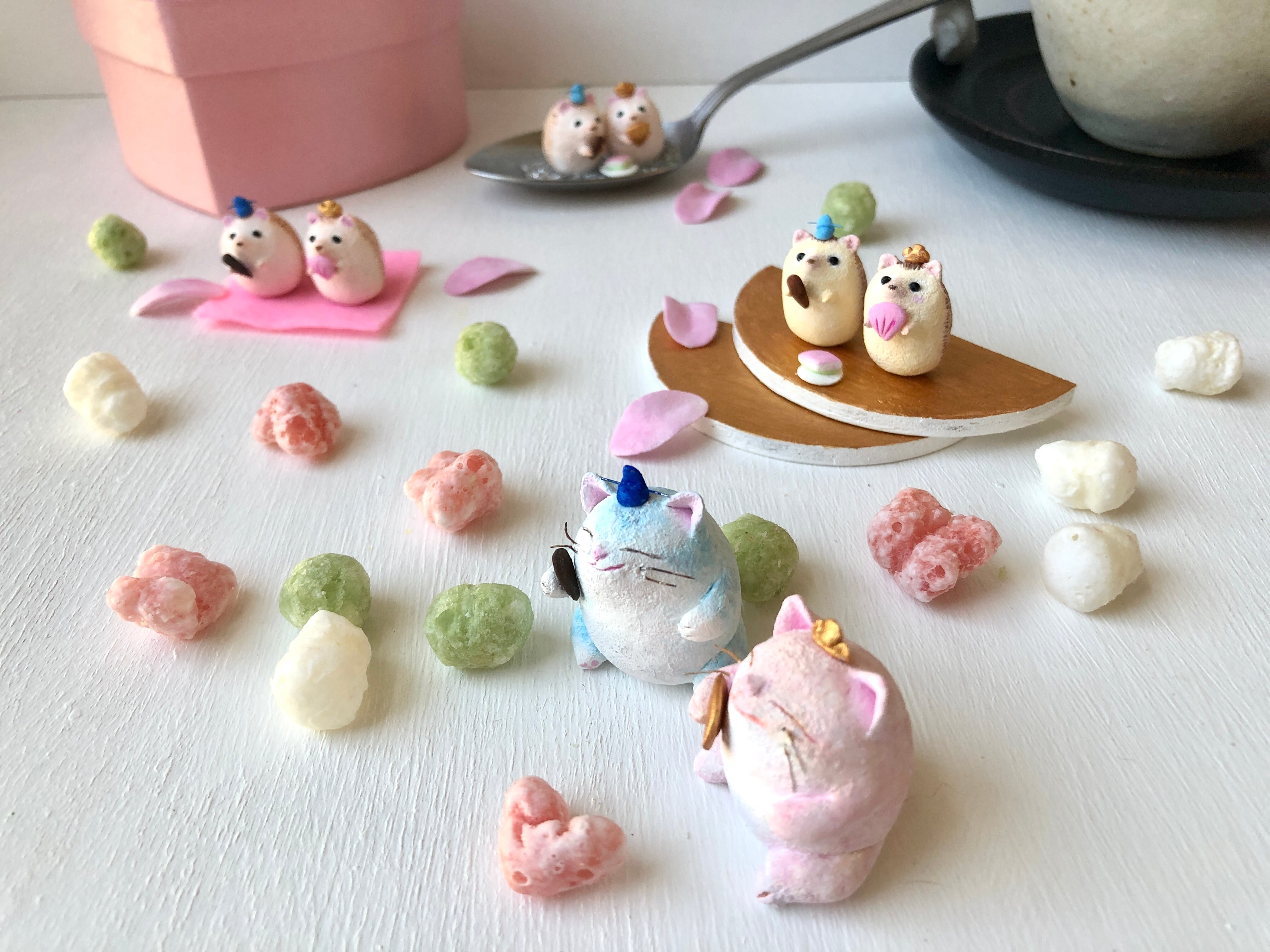 ハリネズミさんの身長約2センチ。冠の幅約0.5センチ。