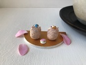 ハリネズミのおひなさまです。身長約2センチの、スープスプーンにのってしまうサイズのちいさなおひなさま。仲良しの二人です。