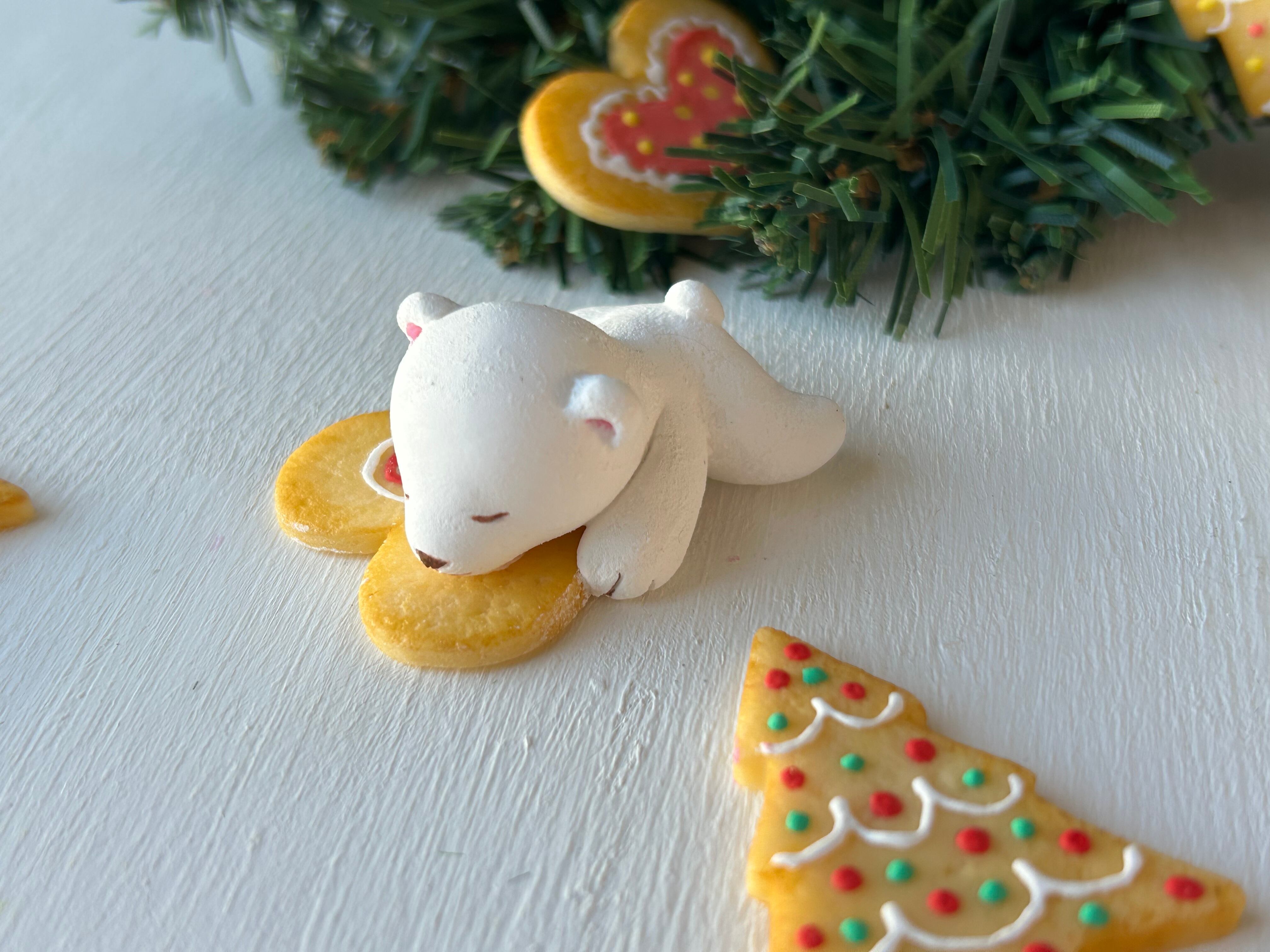 食いしん坊のシロクマさんたちが、クッキーのリースで大喜び。大騒ぎです。