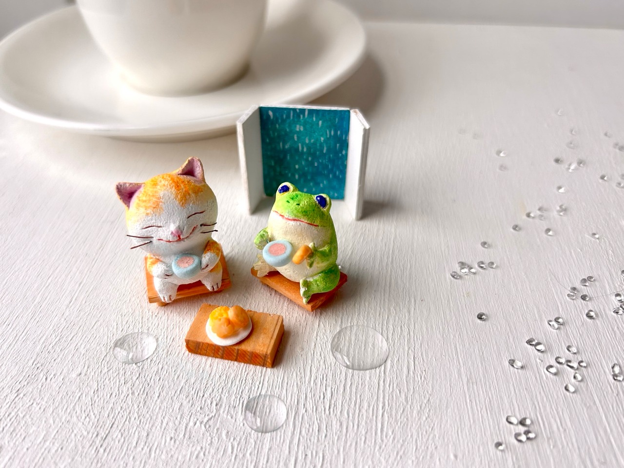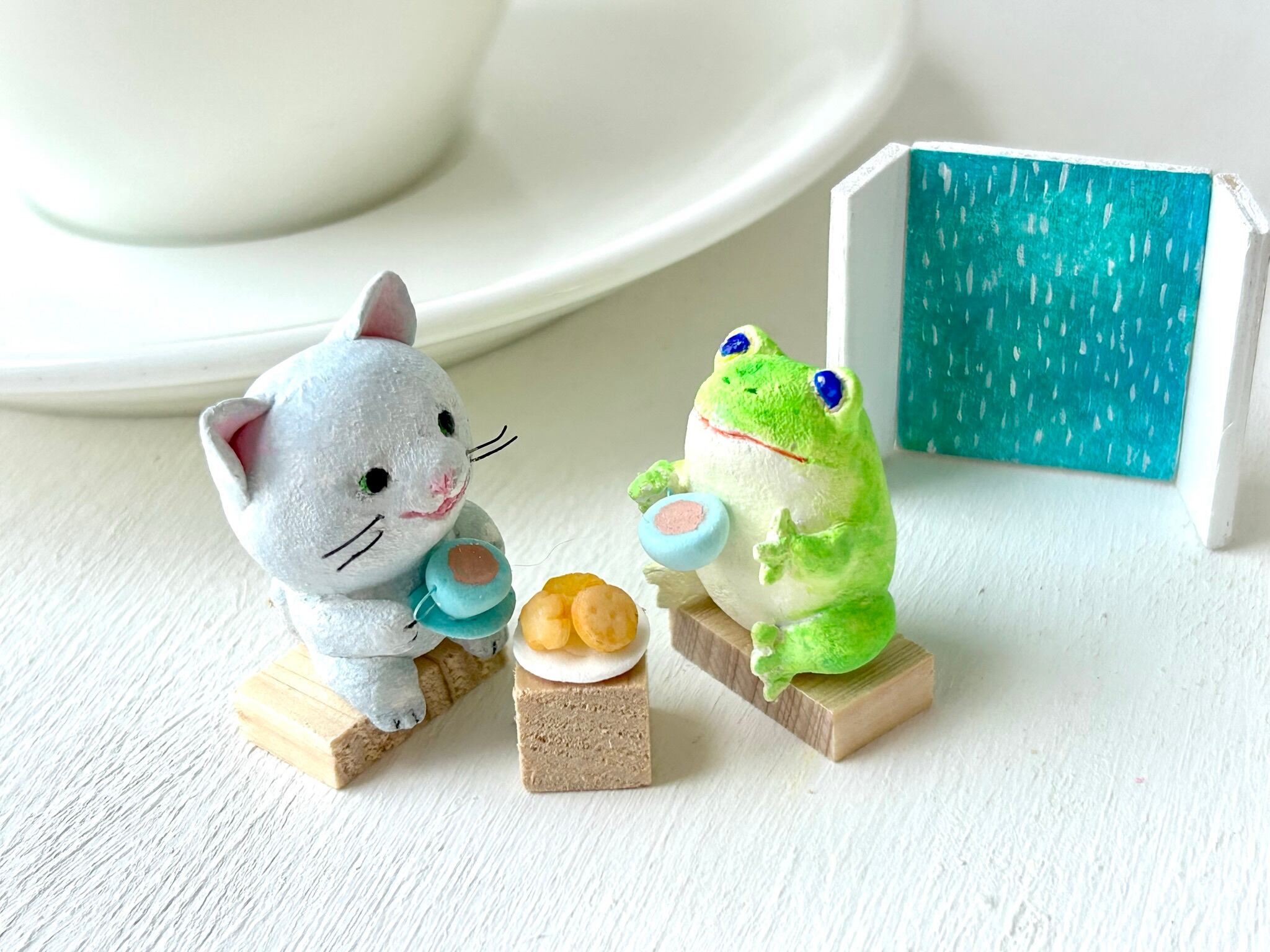 猫さんかえるさん 身長約3センチです。