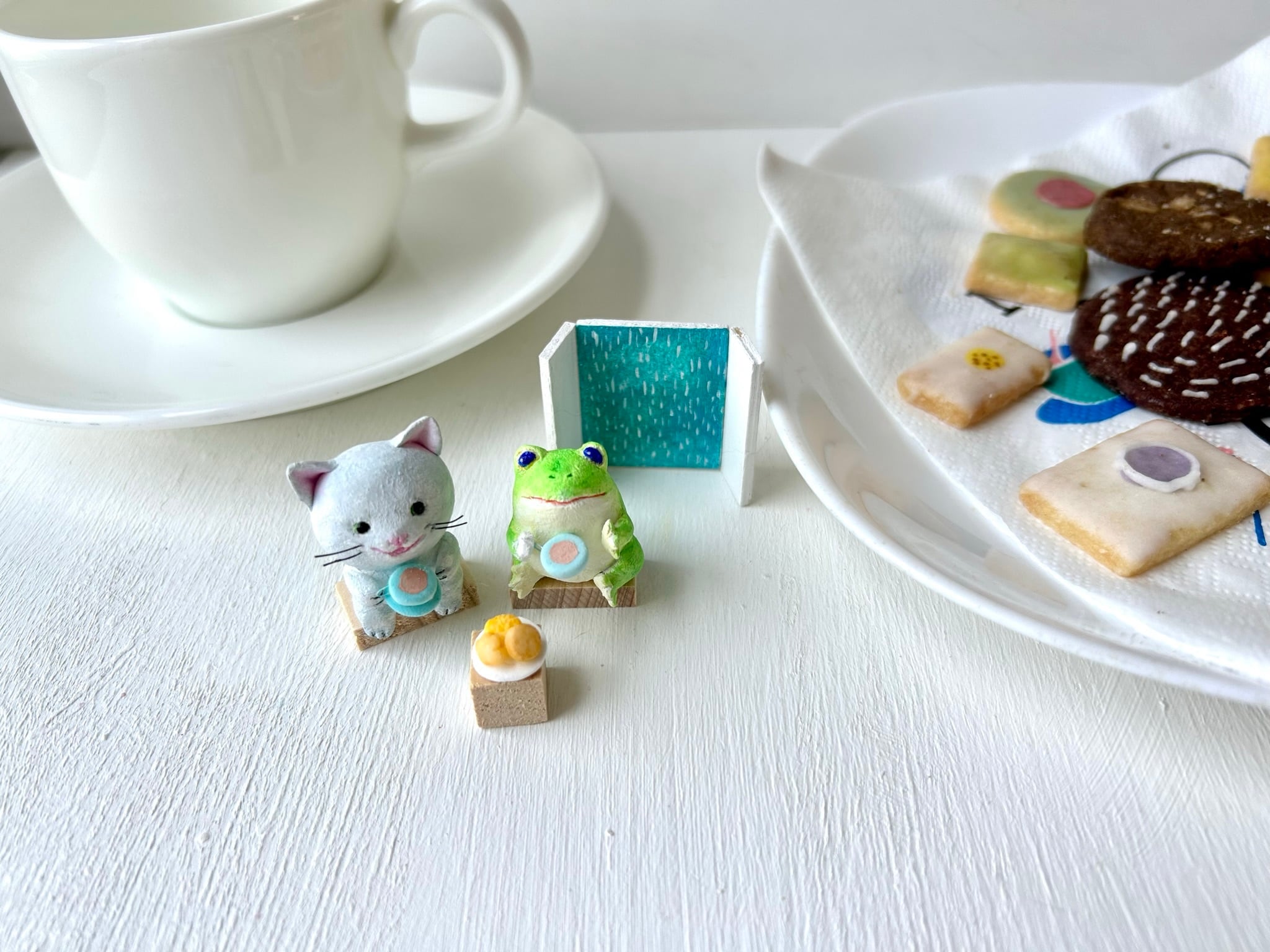 クッキー、お皿→樹脂粘土製。